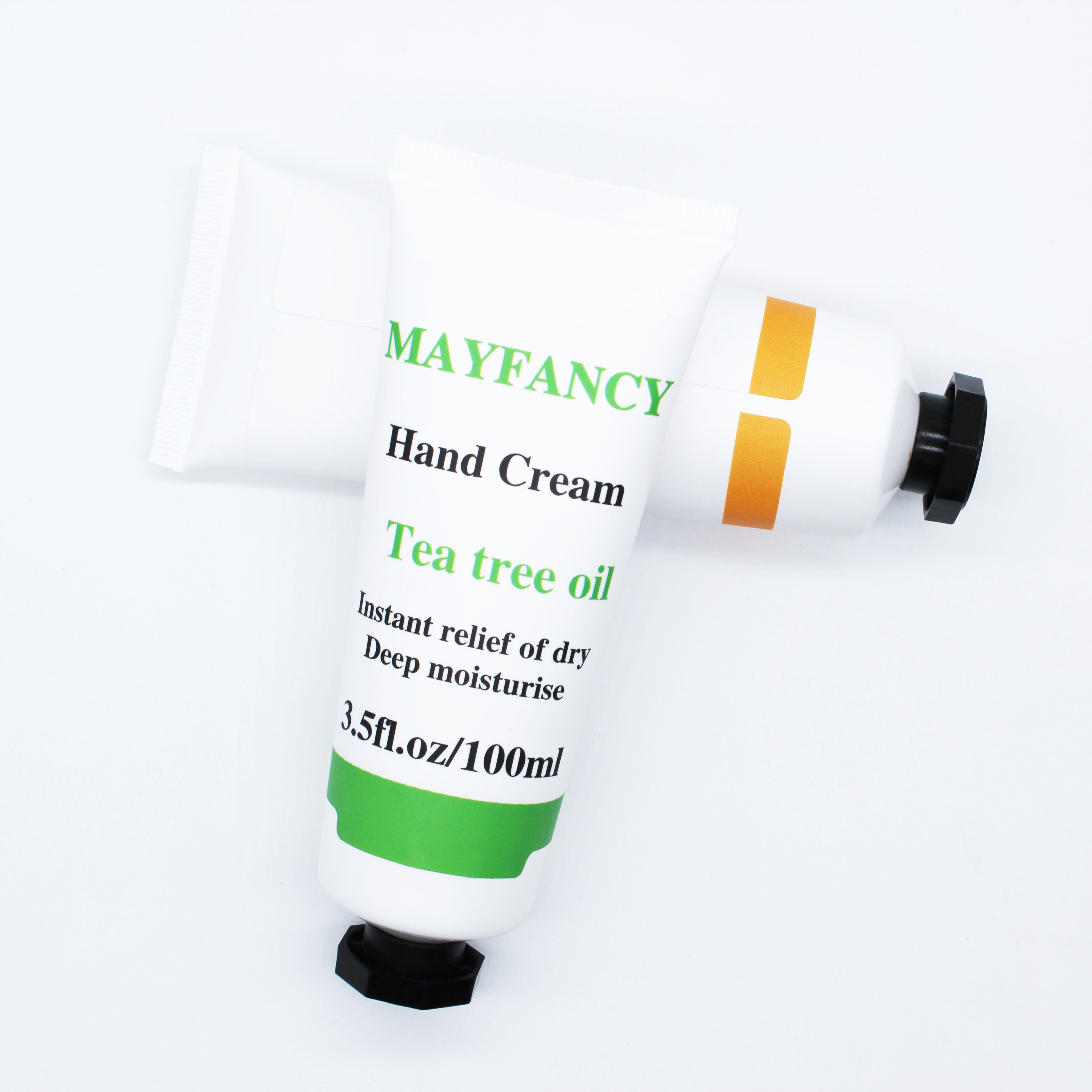 Óleo da árvore do chá Mayfancy creme para mãos é conhecida por seus efeitos refrescantes, anti-inflamatórios, bactericidas, analgésicos e calmantes. Picadas de insetos, compressas frias para queimaduras, pele seca e rachada, etc., podem ser rapidamente aliviados useo óleo da árvore do chá creme para mãos creme para mãos.
